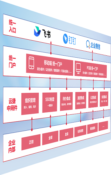 对协作平台提供支持服务,,,,支持企业应用与协作平台对接,,包含组织同步、、消息集成、、待办集成等。。。。支持目前主流的协作平台:钉钉、、、企微和飞书。。。。